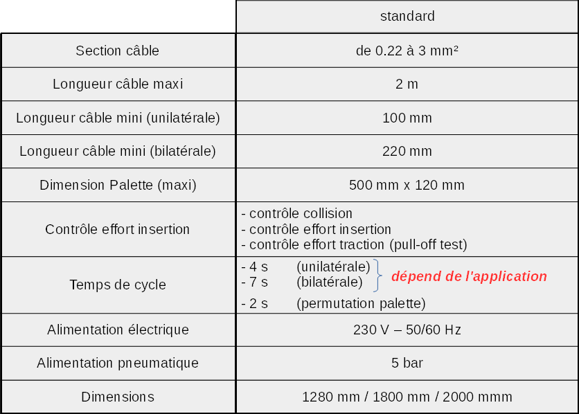 Dimension Palettes: 500 mm x 120 mm (connecteurs en ligne)